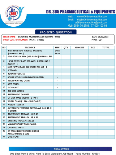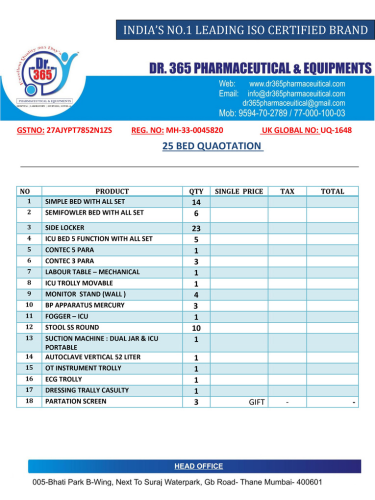 LIST DR 365 35 BED HOSPITAL + CIVIL