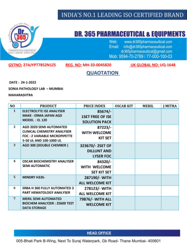 LIST DR 365 LAB LIST